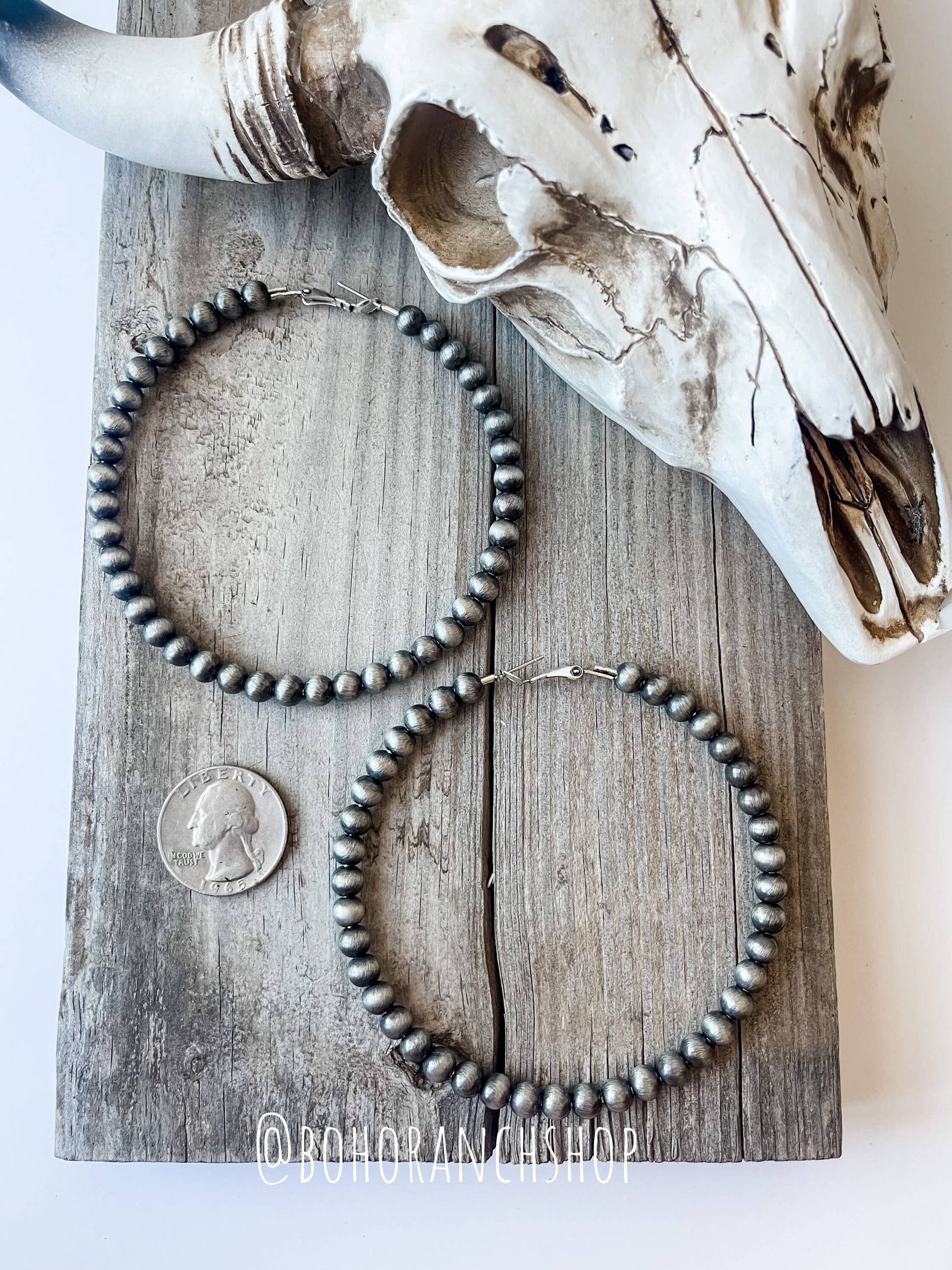 3” Navajo Pearl Hoops Earrings - Western Statement Earrings - Navajo Style Silver | Cowgirl Rodeo Punchy