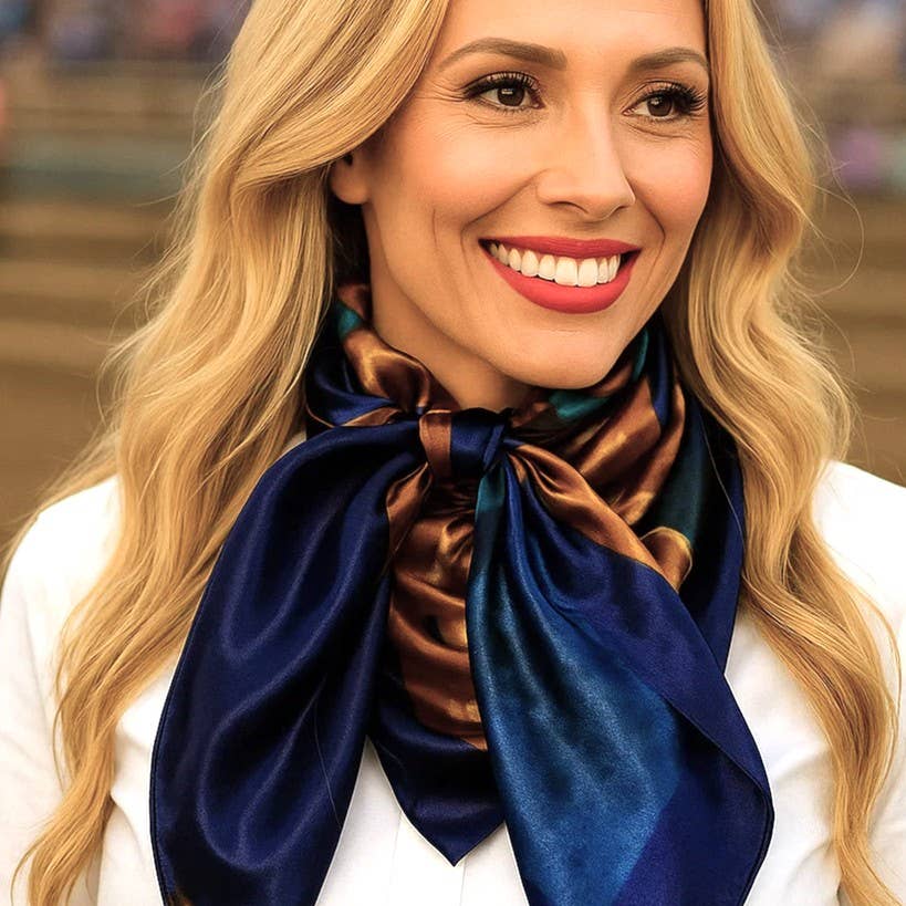 Our classic wild rag/scarf in a bright blue with a lovely floral design.