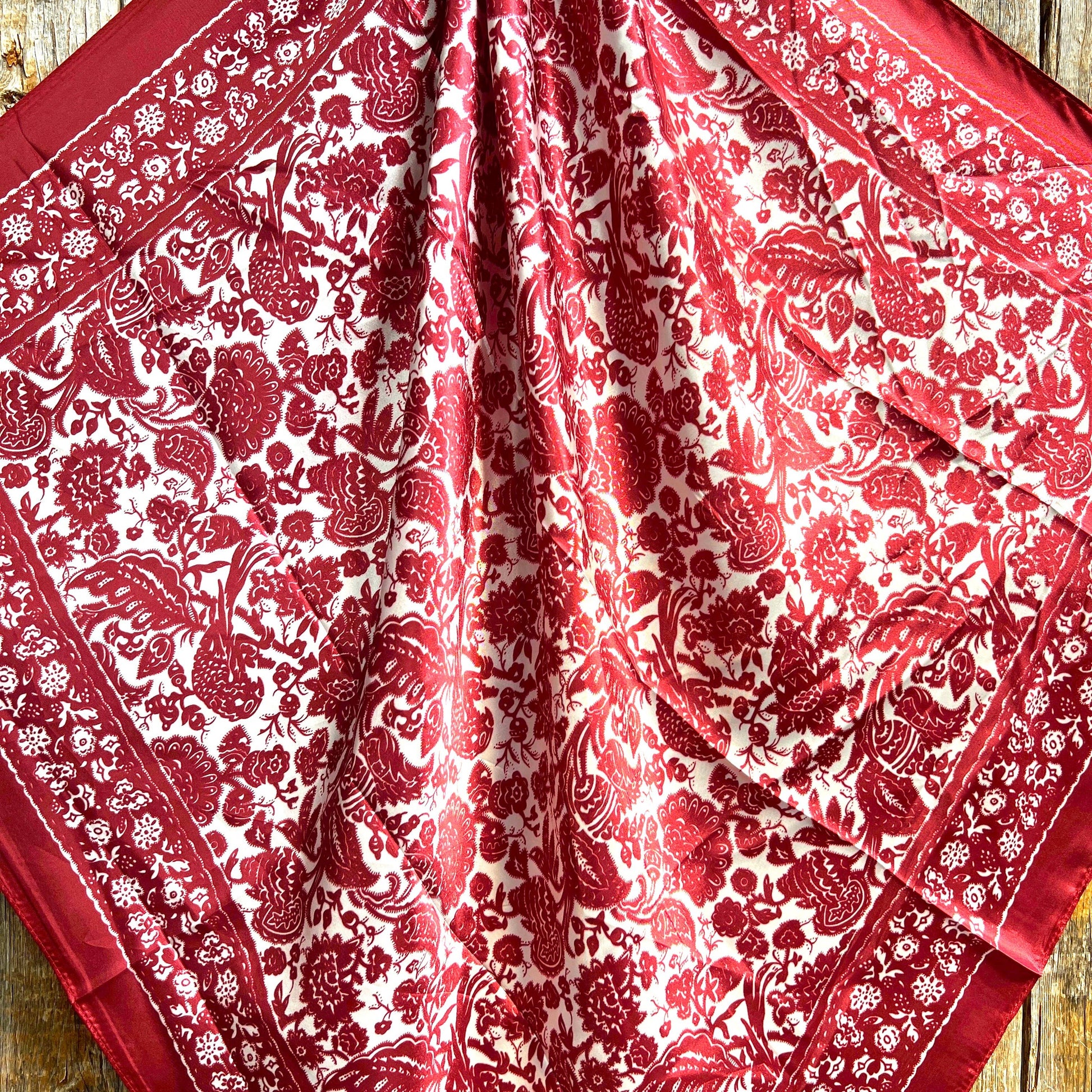 35X35" Red & Cream Paisley Wild Rag/Scarf -Copper Clear Slide WRC143B