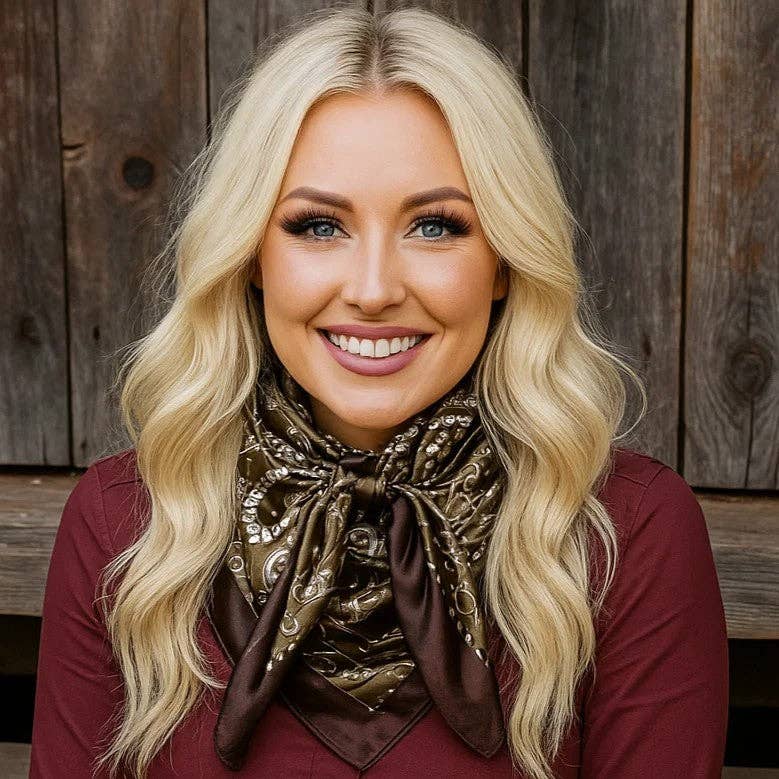 35X35" Sage and Brown Floral Paisley Wild Rag / Scarf WR3385