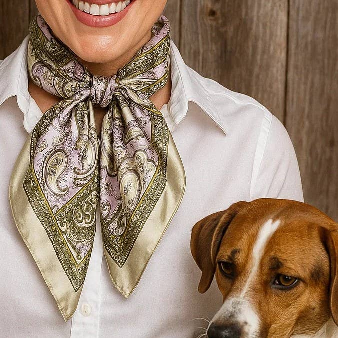 Our classic wild rag/scarf in Tan & Pink Paisley.