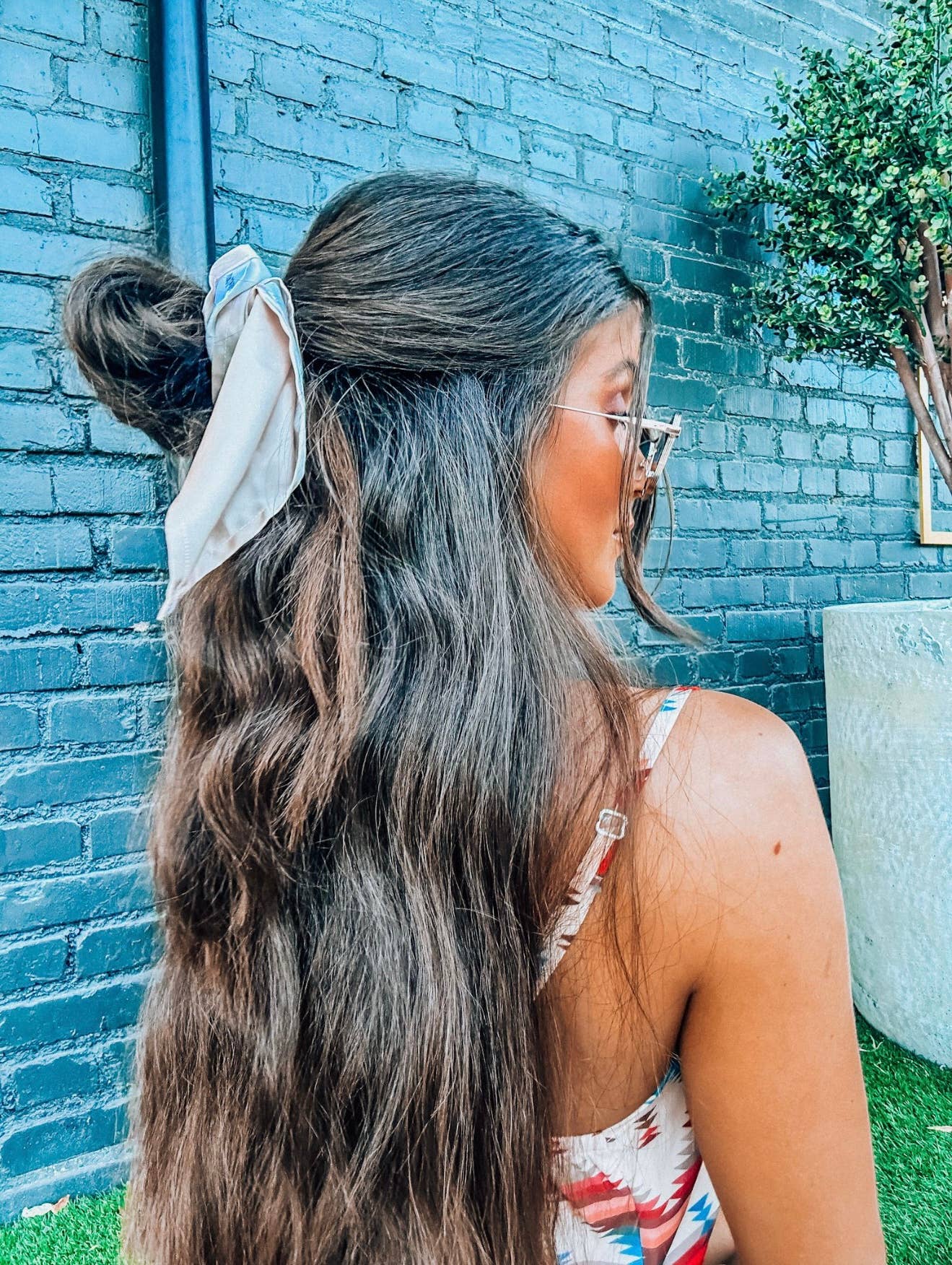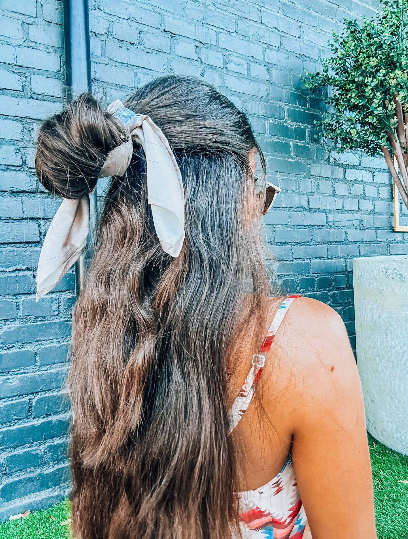 This multipurpose fashion Beige Buckaroo Scarf is a mini version of our Wild Rag and has so many uses. Wear it as a kerchief, tie it onto a tote, wrap it around your wrist—trust us, you'll never tire of the ways to wear this timeless bandana.