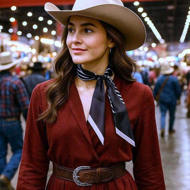 Western-Inspired Skinny Mini Scarf brings a modern twist to the traditional wild rag.