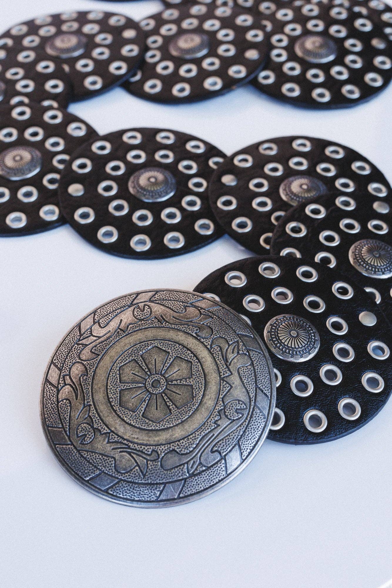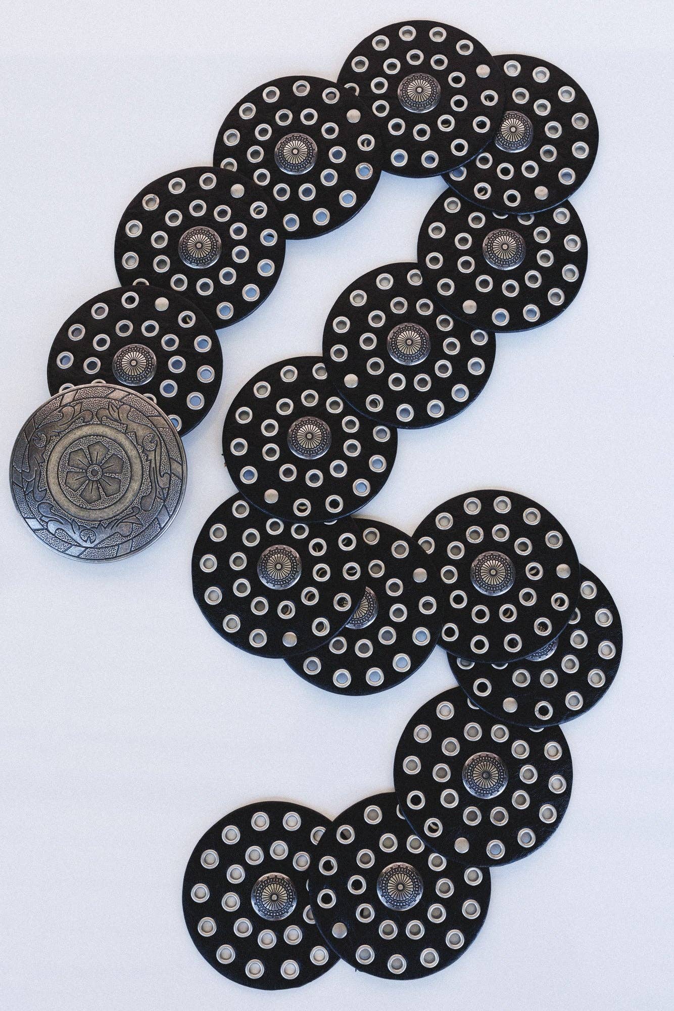 * Black faux leather medallion belt