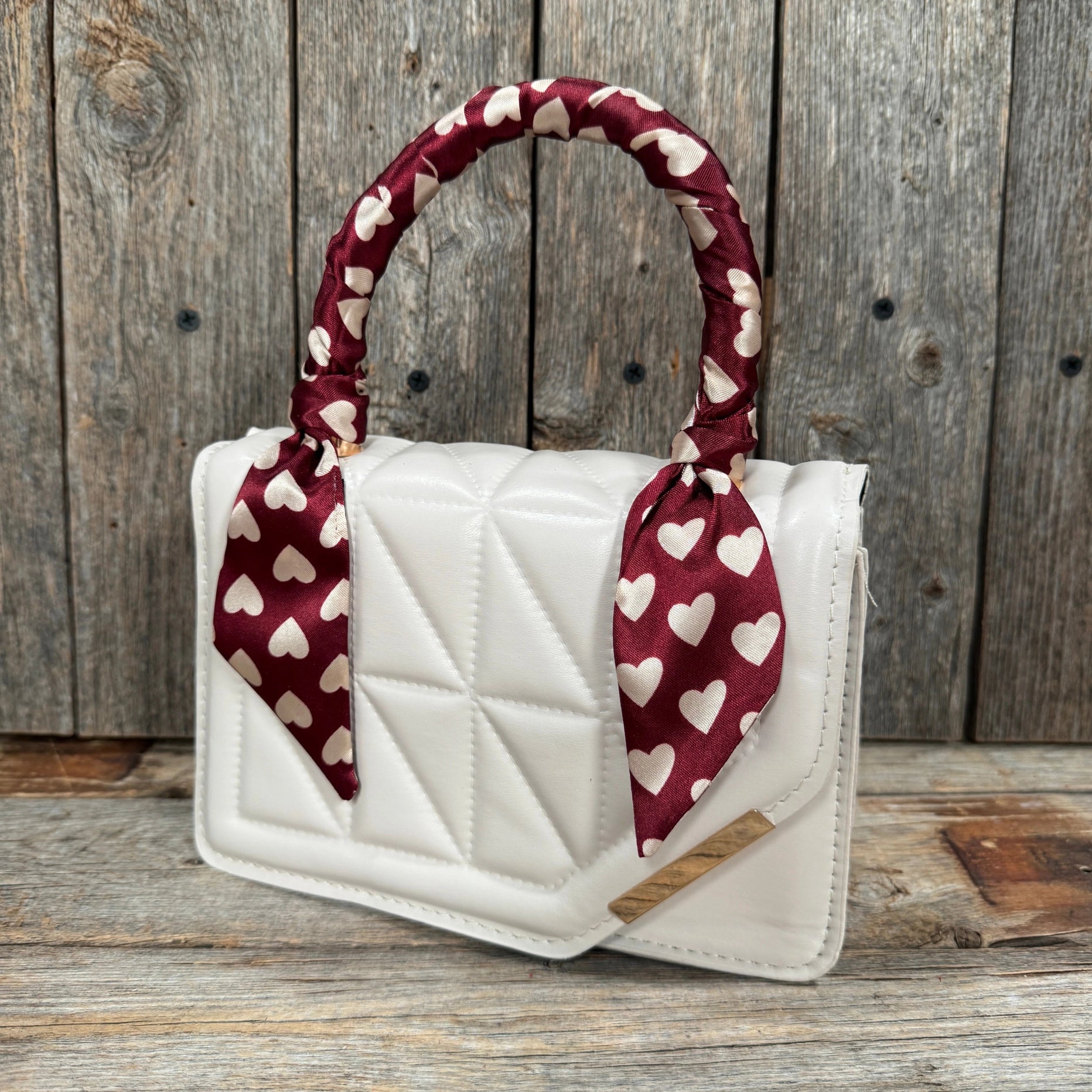 Western-Inspired Skinny Mini Scarf, brings a modern twist to the traditional wild rag. Why you'll love it: * Burgundy and cream hearts pattern * Lightweight, 100% silky soft polyester * Can be used for as a purse wrap, headband, neckerchief and more! * Express your western style, dress up any outfit * Measuring 39" x 1.5" Purse and other accessories not included.
