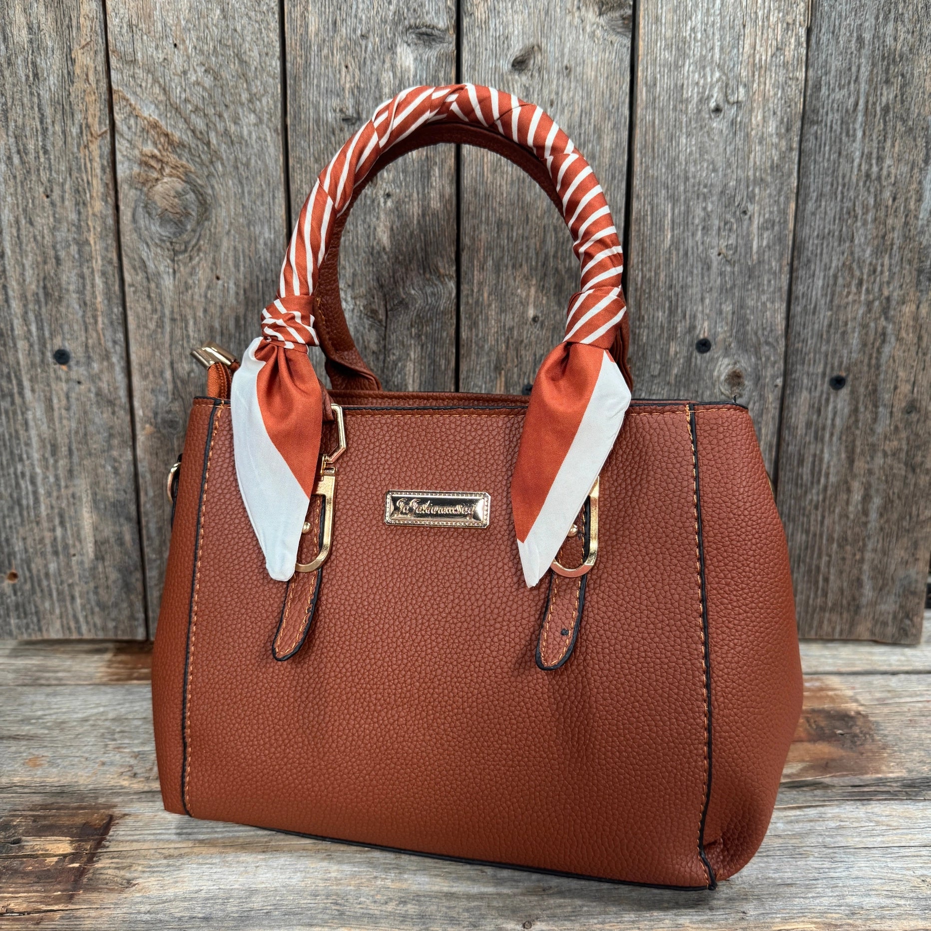 Western-Inspired Skinny Mini Scarf brings a modern twist to the traditional wild rag. Why you'll love it: * Burnt orange and cream striped pattern * Lightweight, 100% polyester * Can be used for as a purse wrap, headband, neckerchief and more! * Express your western style, dress up any outfit * Measuring 34" x 2.25" Purse and other accessories not included.