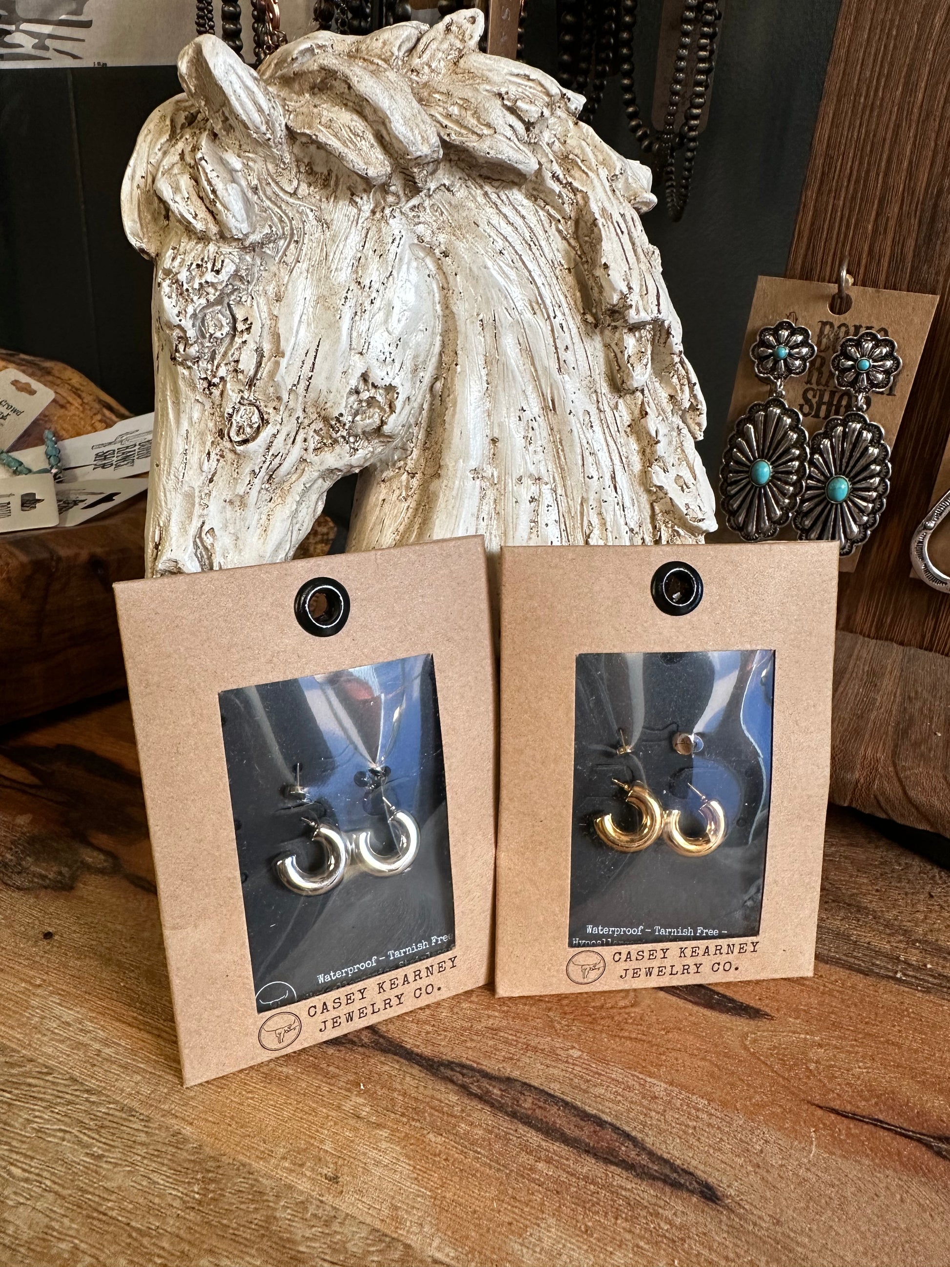 Meet your new earring essentials! This fabulous two-pack features a branded stud and matching hoop, designed for everyday glamour. Crafted to never tarnish and hypoallergenic for sensitive skin, they're the perfect grab-and-go pair that transitions seamlessly from casual coffee runs to dressed-up nights out. Versatile, durable, and undeniably chic—these earrings are about to become your go-to favorites.