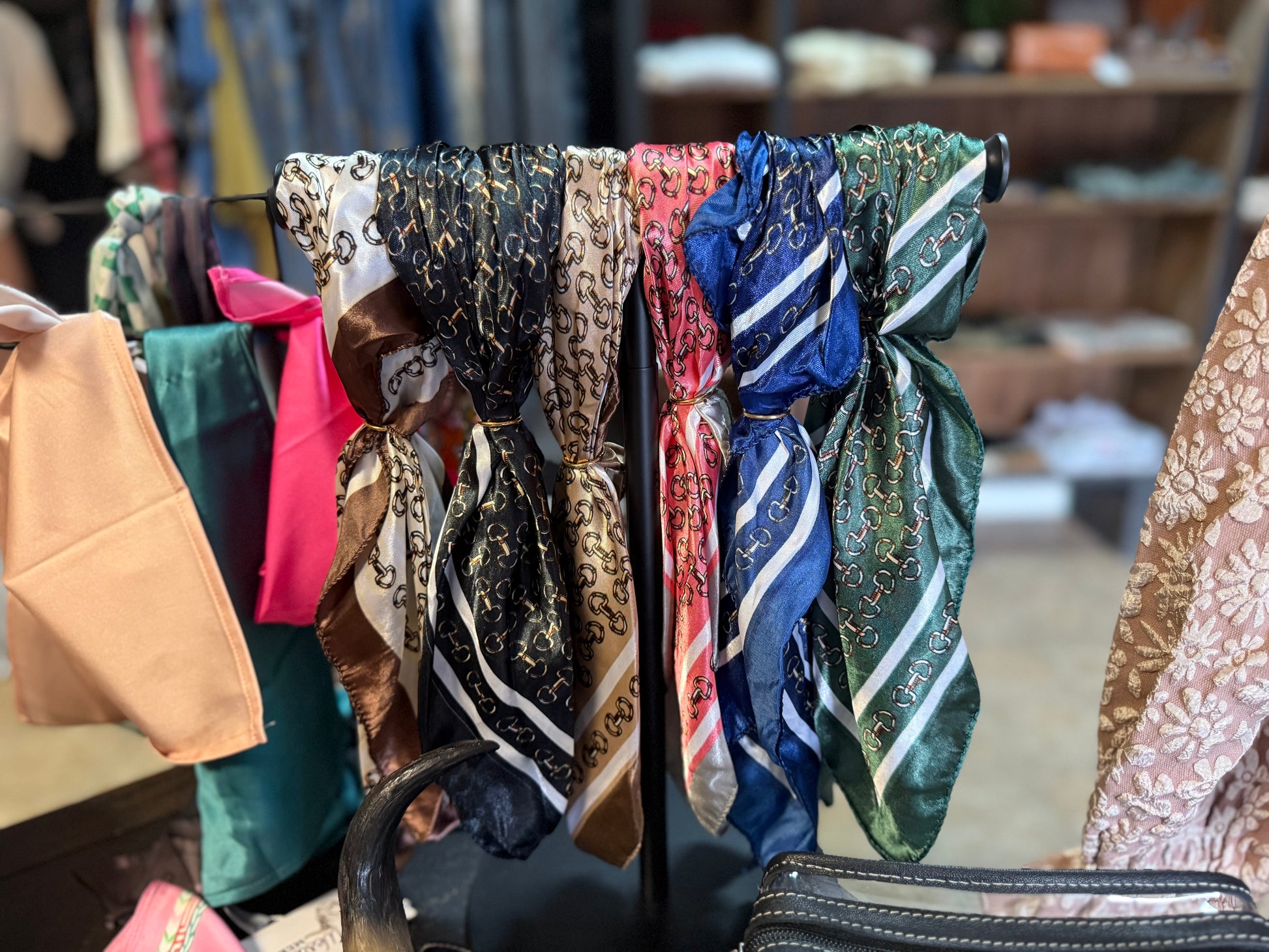 Wrap yourself in playful elegance with the Bit of Style Scarf. This snaffle-patterned scarf feels silky smooth and soft, gently embracing your skin with a perfect stretch thanks to its elastic bias. Sized at 18" x 19", it’s an ideal accessory for all seasons. Choose from six vibrant colors, each finished with a shiny gold ring to add a fun sparkle to your everyday style!