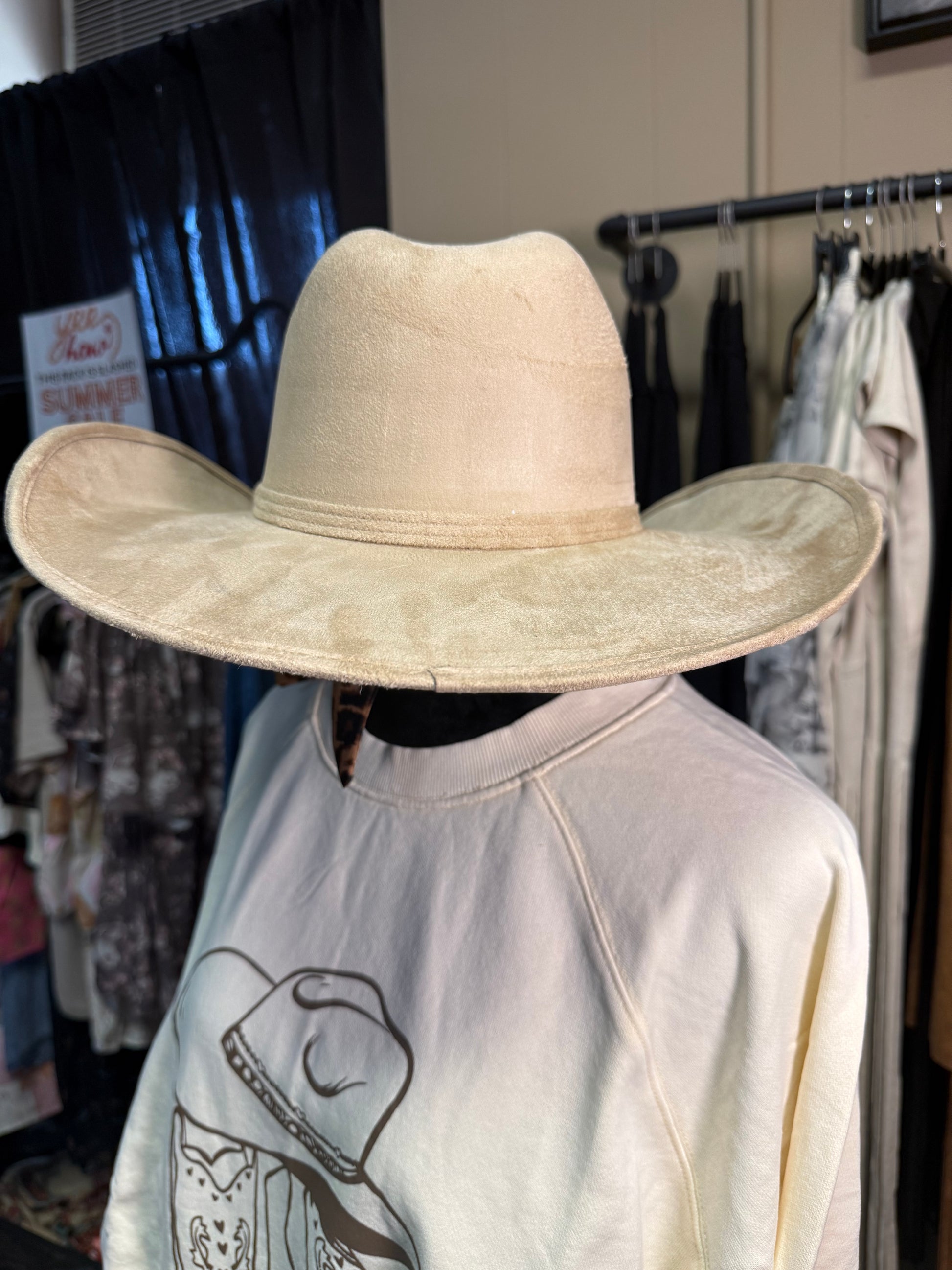 Unisex Vegan suede cowboy hat with elastic band for comfort. 100 % Polyester