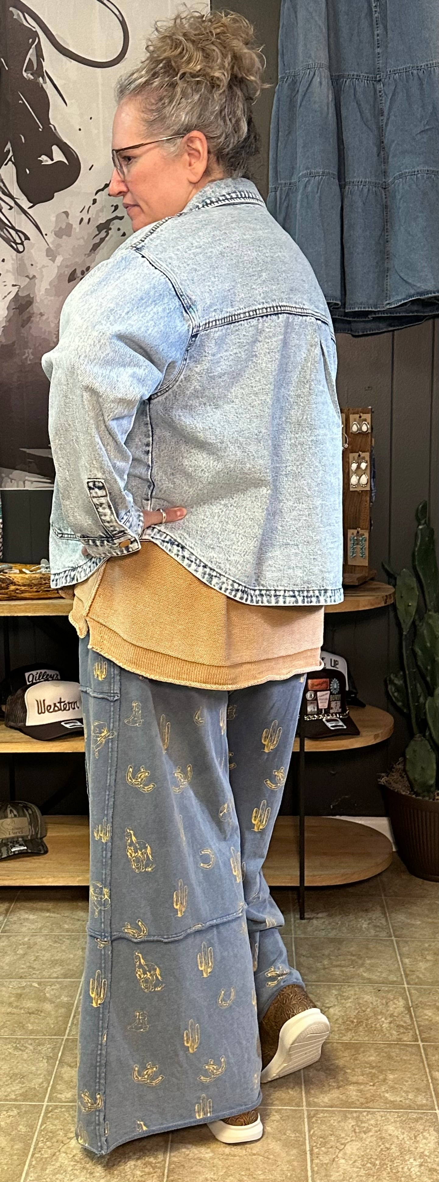 Bring a touch of rugged charm to your wardrobe with the Cowgirl Canyon Denim Jacket. Featuring double front pockets for all your little essentials and a stylish back pleat detail, this washed denim jacket combines practicality with a playful twist. Perfect for layering over your favorite outfits, it adds a dash of vintage-inspired cool wherever you go.