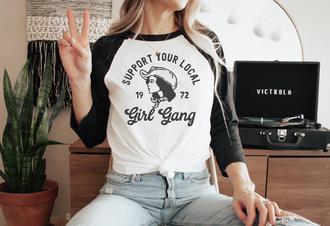 Celebrate friendship and fierce fun with the Girl Gang Raglan! This cozy, stylish raglan tee is perfect for showing off your squad spirit wherever you go. With its comfortable fit and playful design, it’s the ultimate way to support your local girl gang in style. Gather your crew and wear your pride loud and proud!