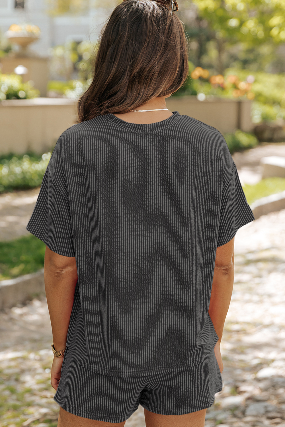 Get ready to ride in style with this playful two-piece set! The carbon gray ribbed shorts feature comfy elastic waistbands and handy pockets, perfectly paired with a matching tee showcasing a sparkling sequin "Bronc Rider" patch. This outfit blends western charm with casual comfort, making it your go-to for fun days and rodeo vibes.