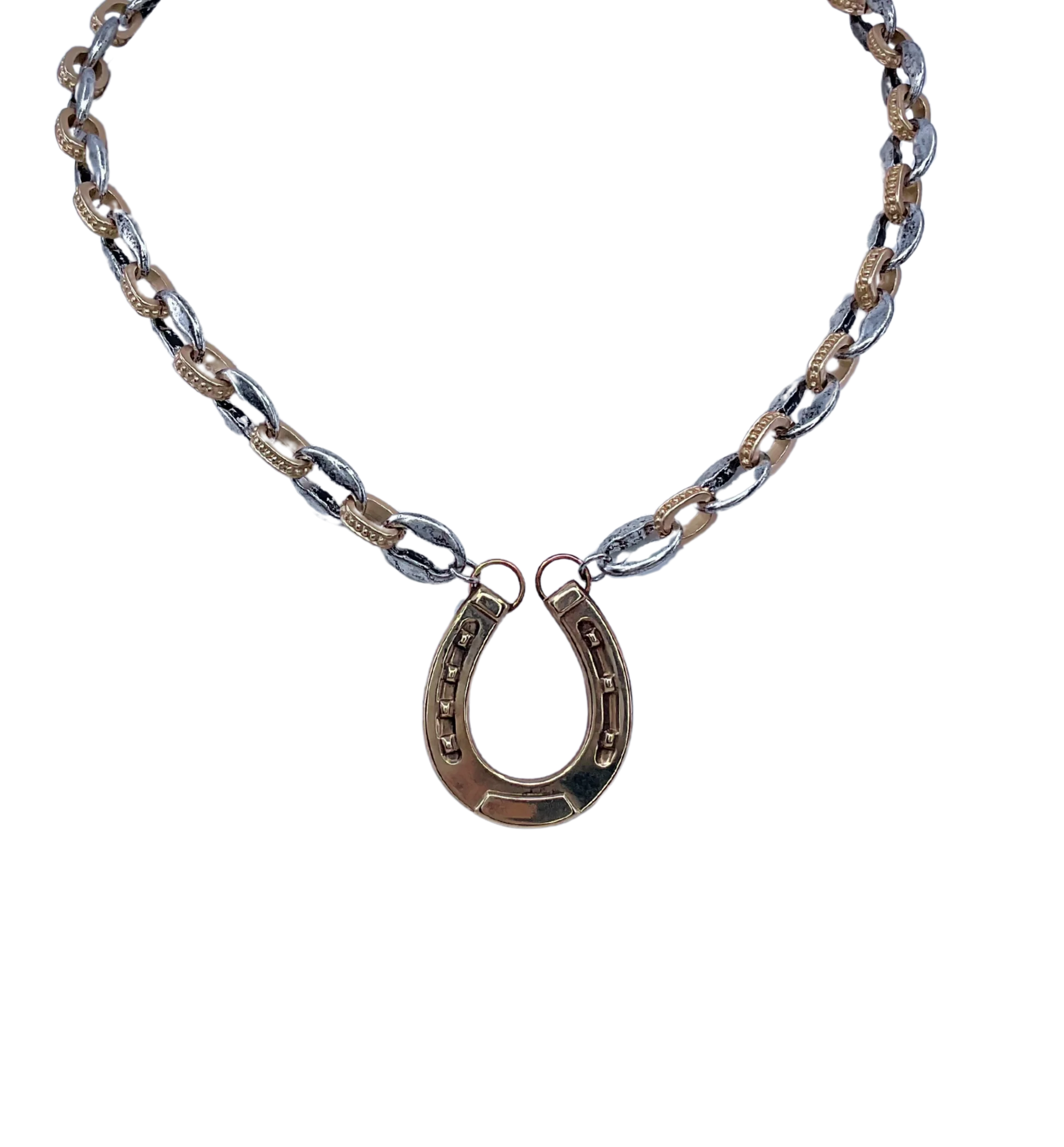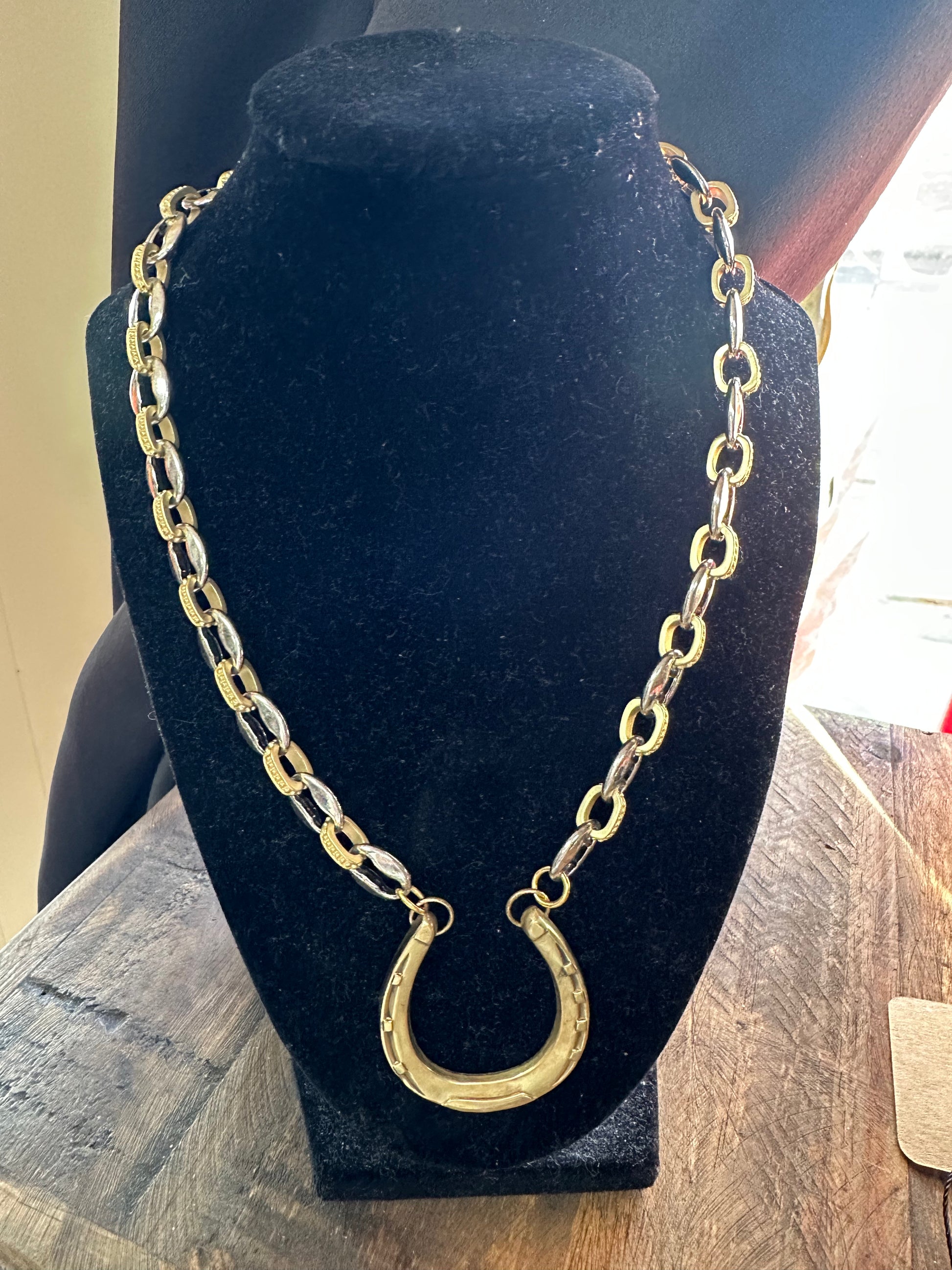 Mixed Metal Chain With Vintage Horseshoe Pendant