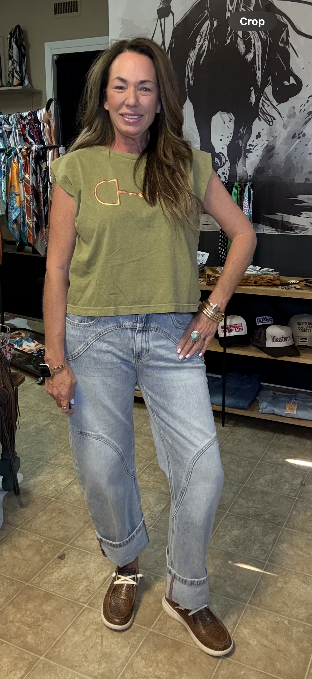 Step up your denim game with the High Rise Barrel Wide Cuff Jean with Stretch. Designed to hug your curves comfortably, these jeans feature a wide cuff that adds a fun twist to your look. The stretchy fabric moves with you, making every step feel effortless and stylish. Perfect for mixing and matching with your favorite tops for a playful, confident vibe.