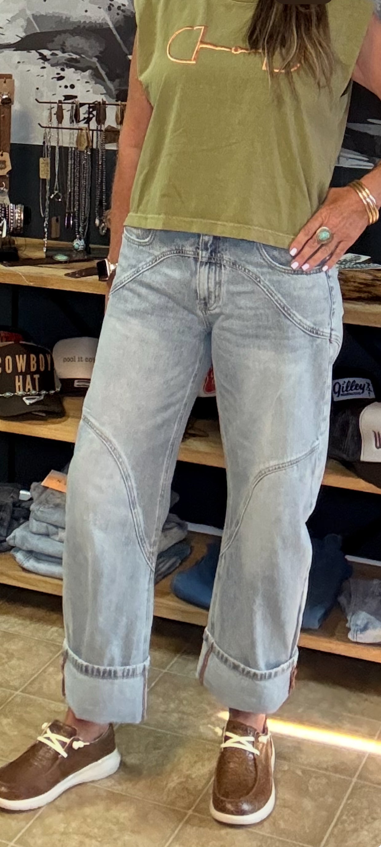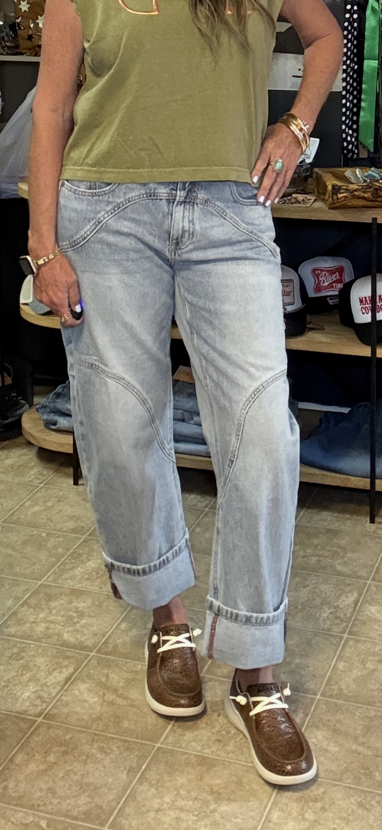 HIGH RISE BARREL WIDE CUFF WITH STRETCH