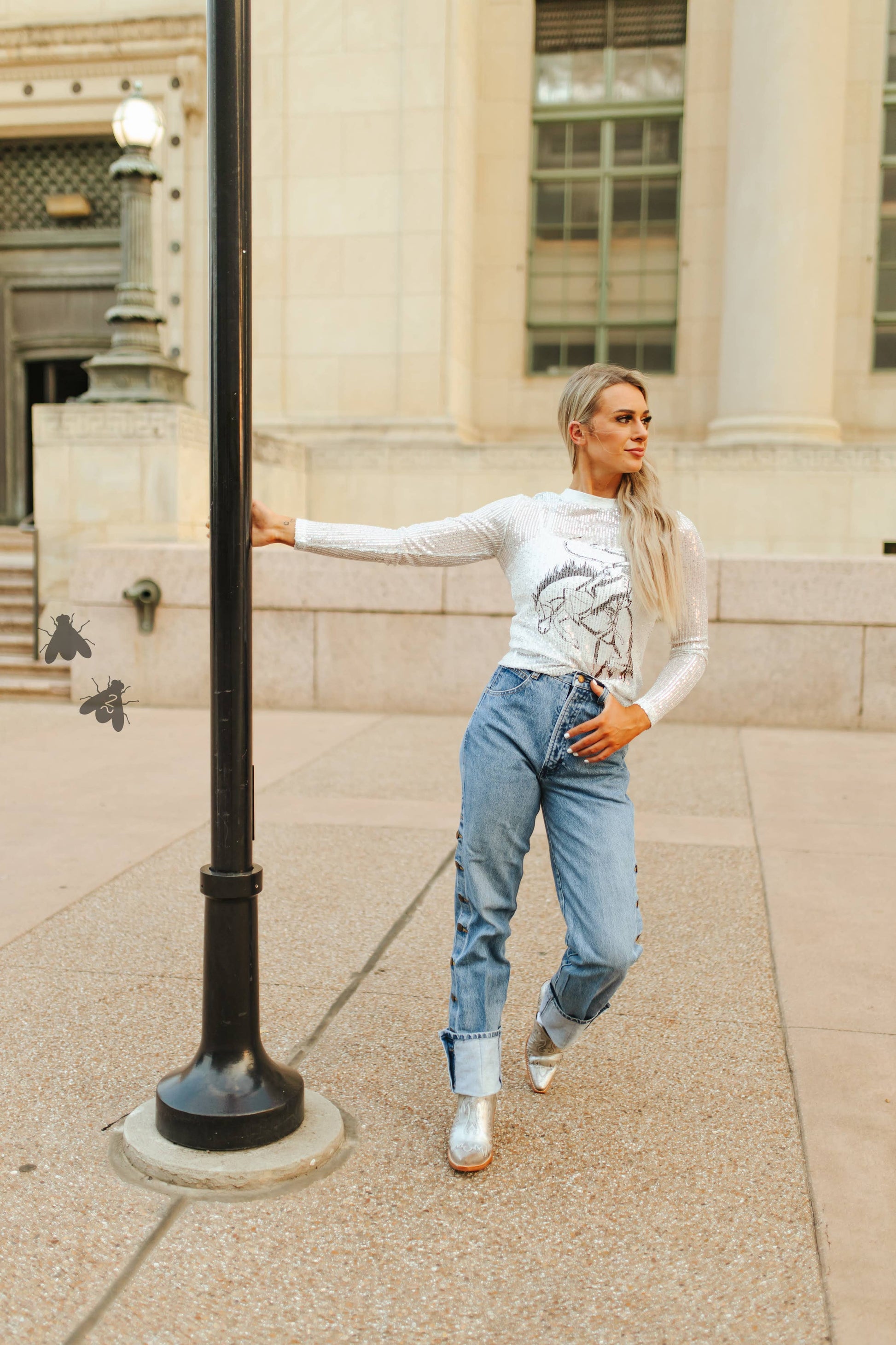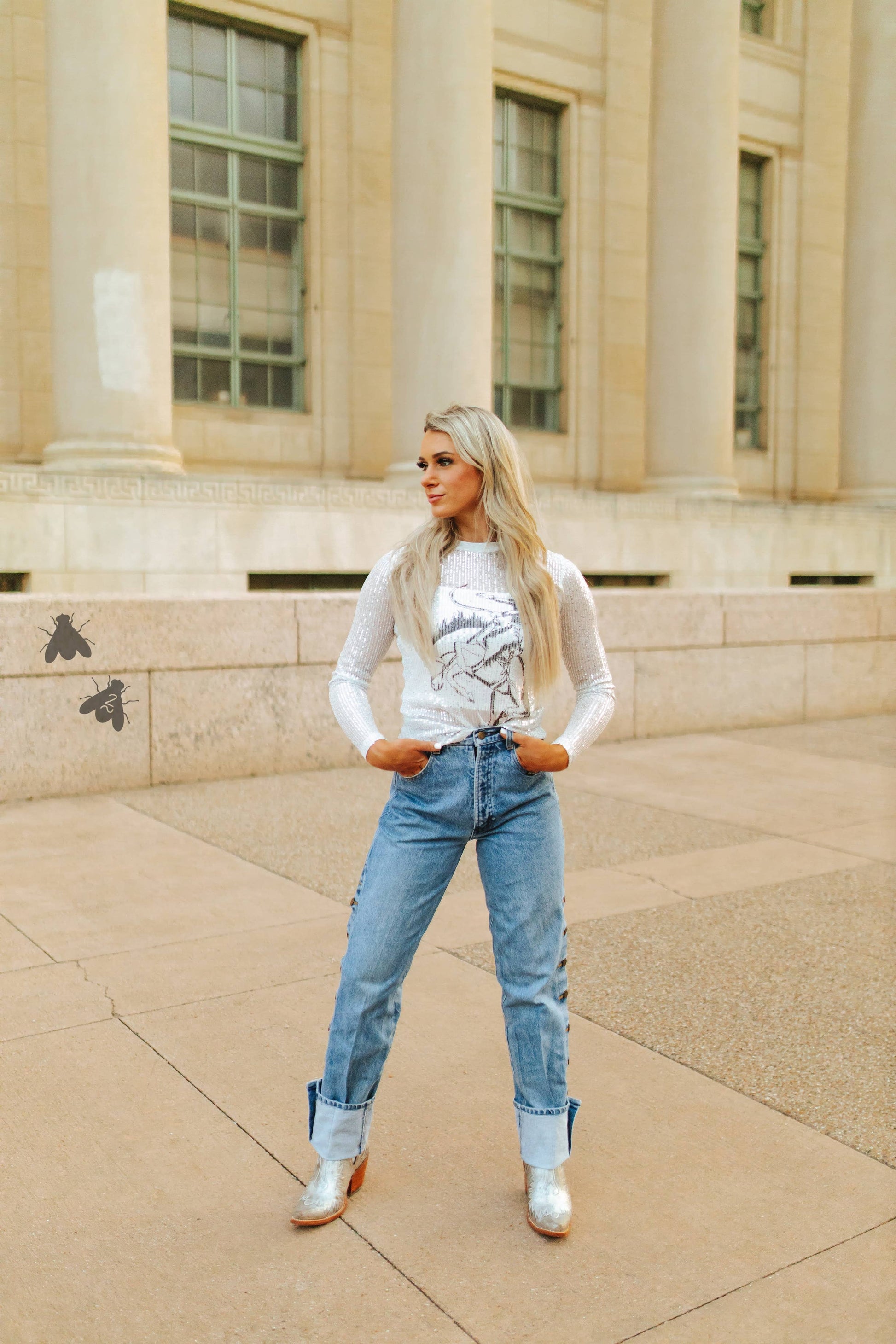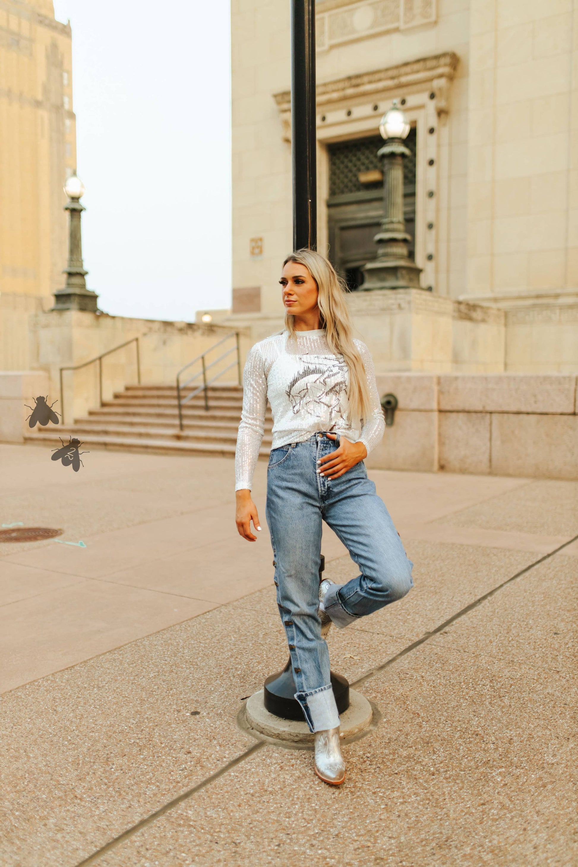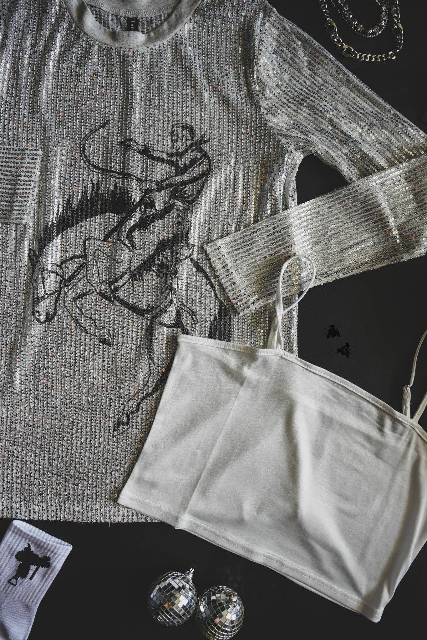 Get ready to shine at your next concert with the Sequin Saddles set! This playful duo features a sparkling sequins cami paired with a breezy mesh top, creating the perfect mix of glam and cool. Whether you're dancing all night or just soaking up the vibes, this combo keeps you stylish and comfortable. Turn heads and sparkle on!