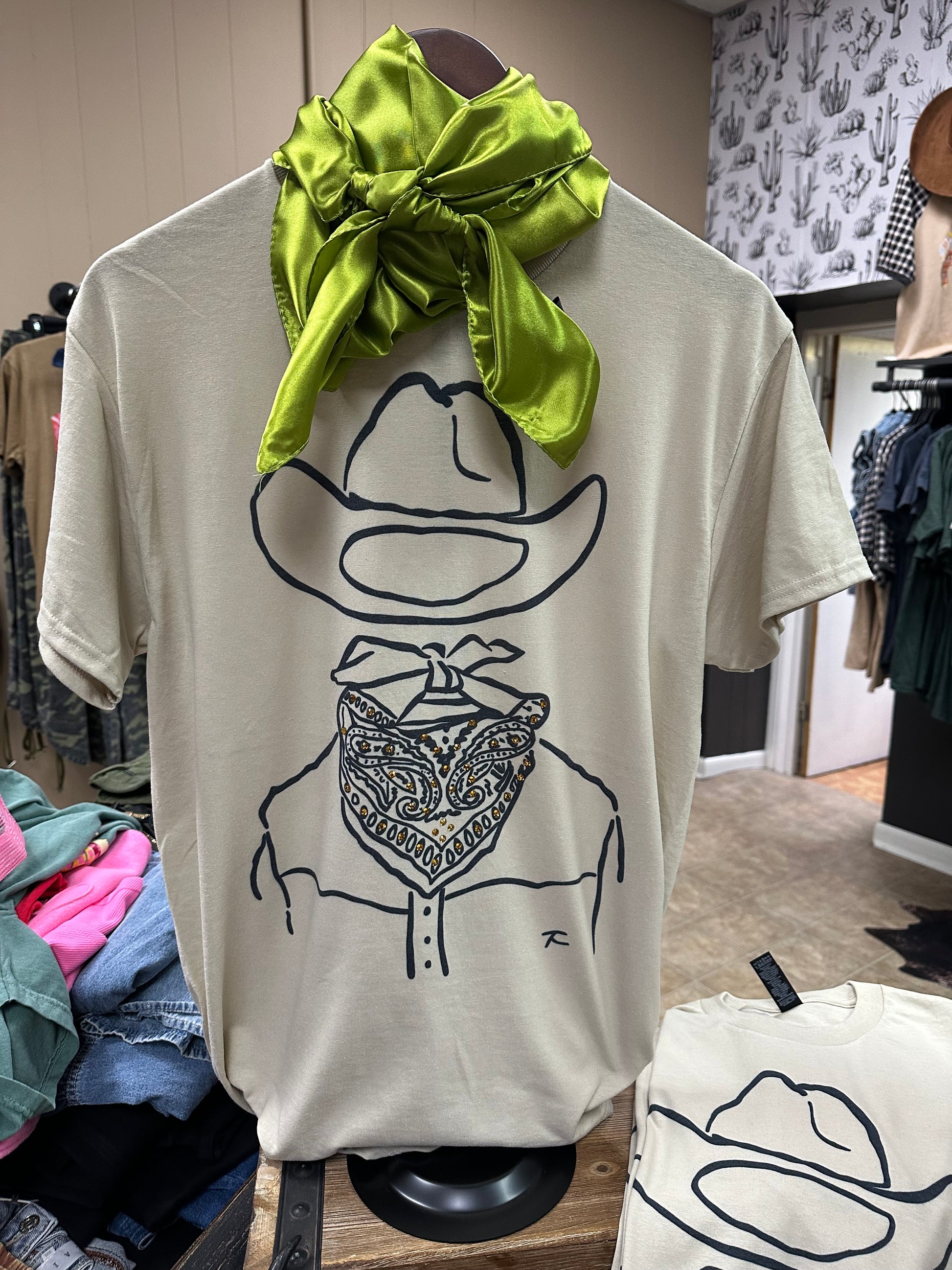 Classic western style meets subtle sparkle in The ROPER Tee. Featuring a minimalist cowboy line-art design paired with a bandana detailed with shimmering jewel accents, this tee brings just the right mix of rugged and glam.
