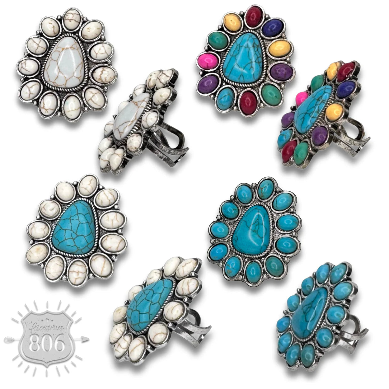 Add a pop of color and charm with this playful flower ring featuring a unique triangle stone at its center, surrounded by vibrant oval stones. Its adjustable base ensures a comfy fit for most, making it a fun and versatile accessory to brighten any outfit.