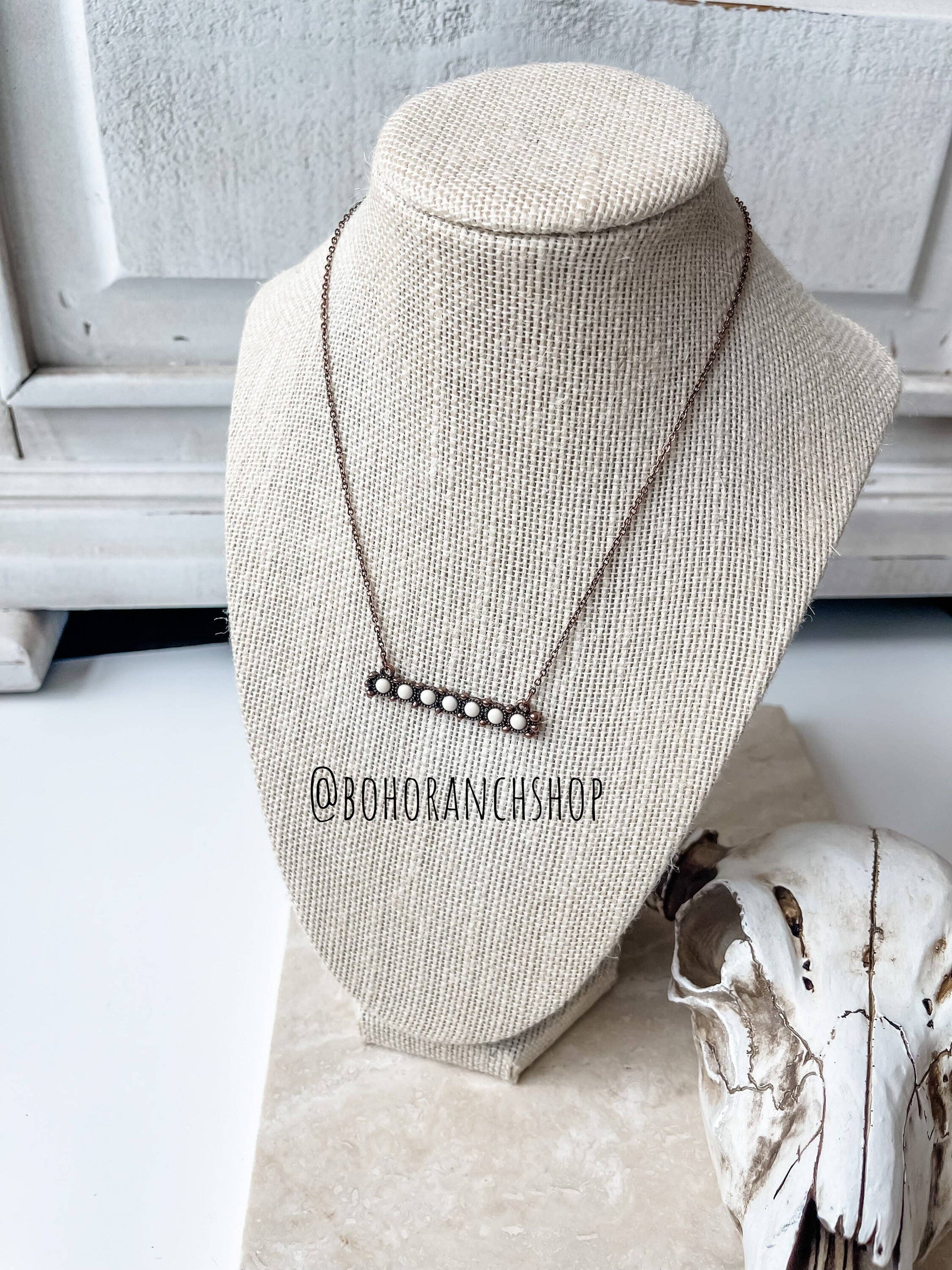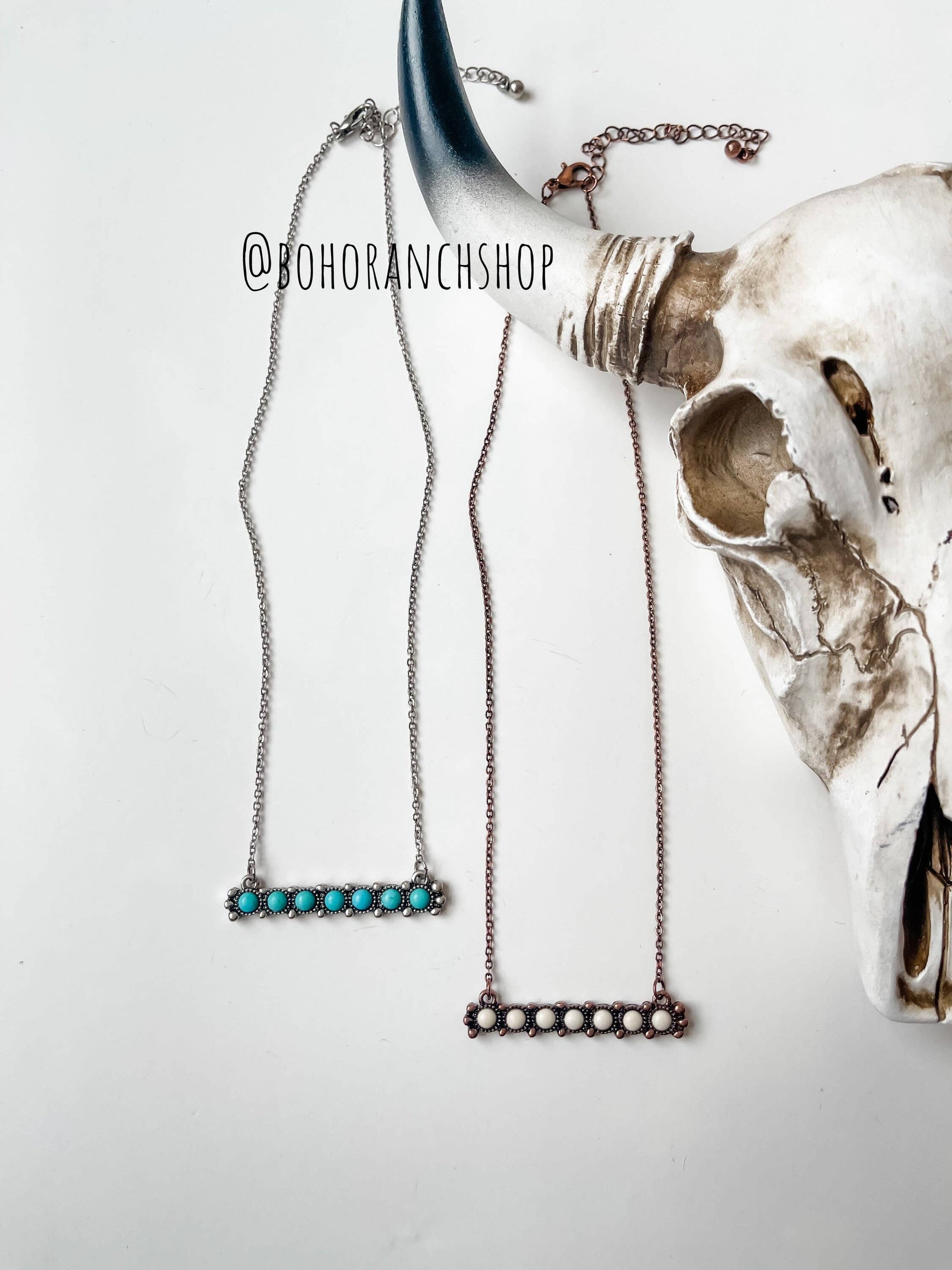 Beaded Bar Necklace | Western Turquoise White Semi Stone Southwestern Jewelry Western