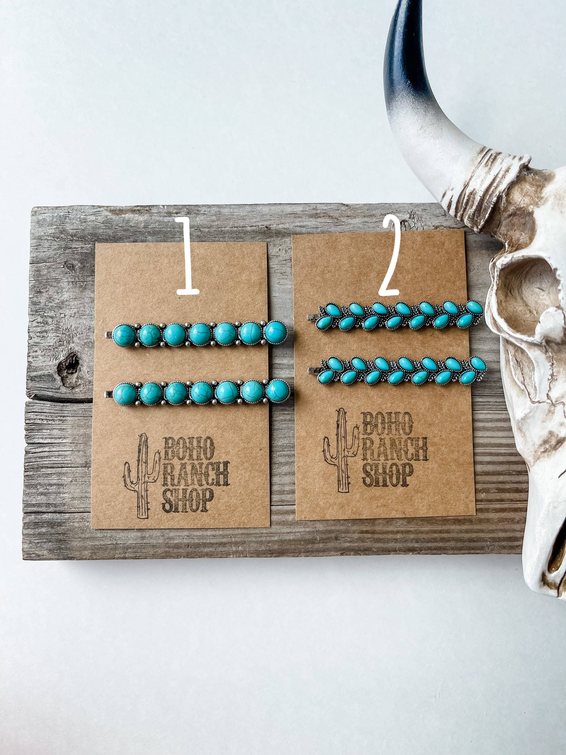 Hair Pin 2 Piece Set| Western Hair Pin Clips Barrette Hair Bling Bobby Pin | Turquoise Wedding Hair Flower Girl Bridesmaids Prom Homecoming