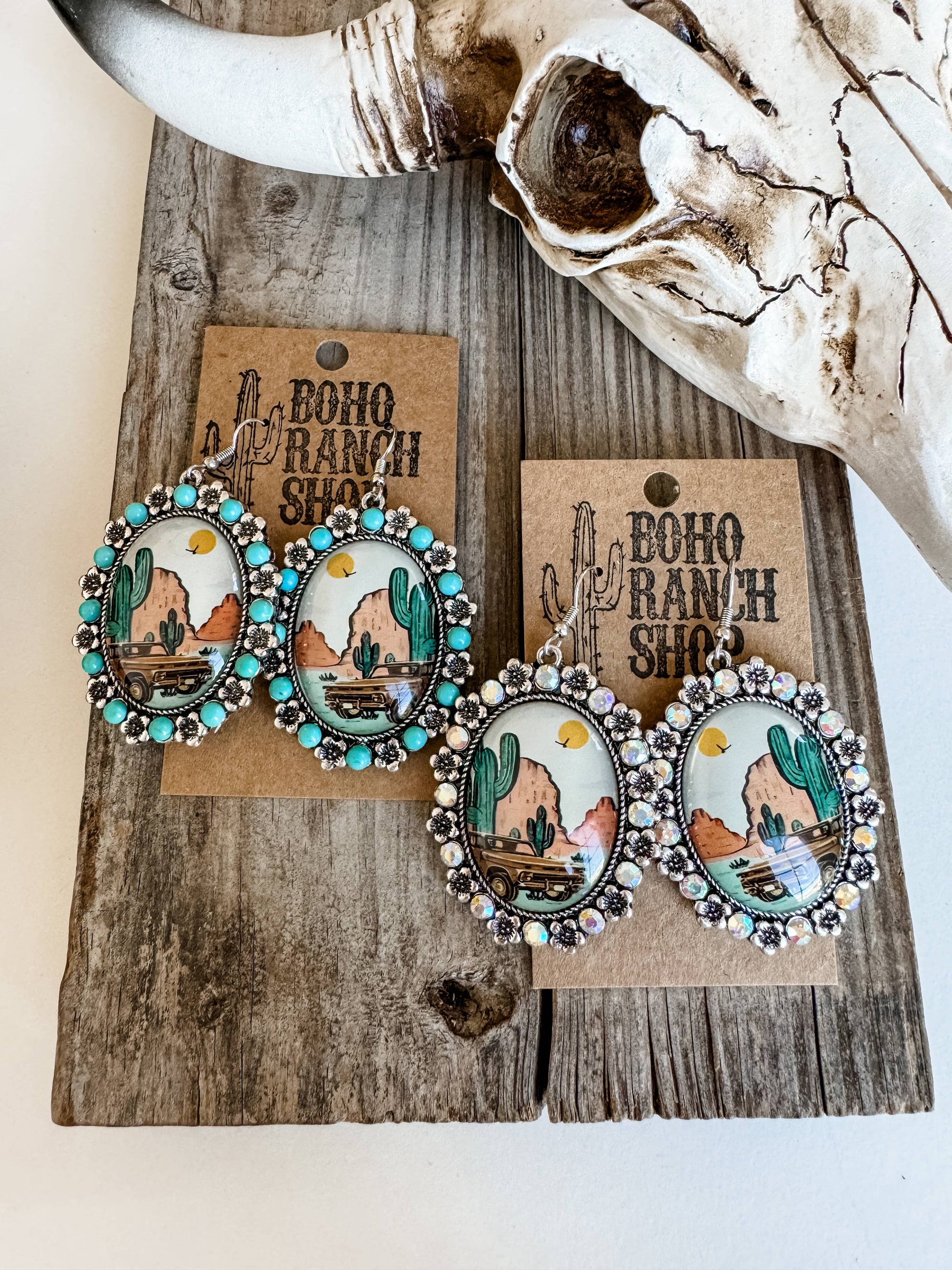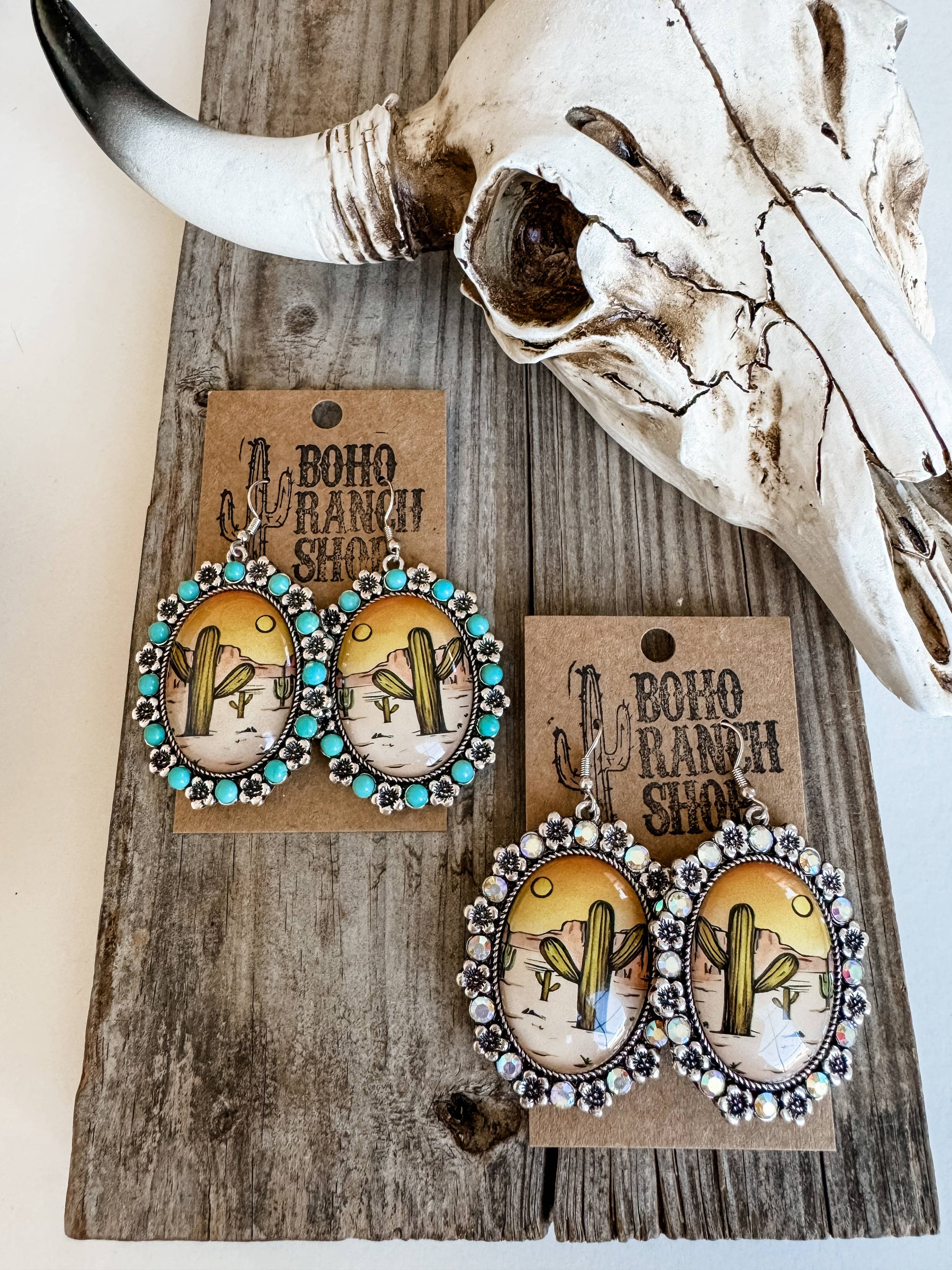 Western Scenery Dangle Earrings - cactus desert rodeo cowboy