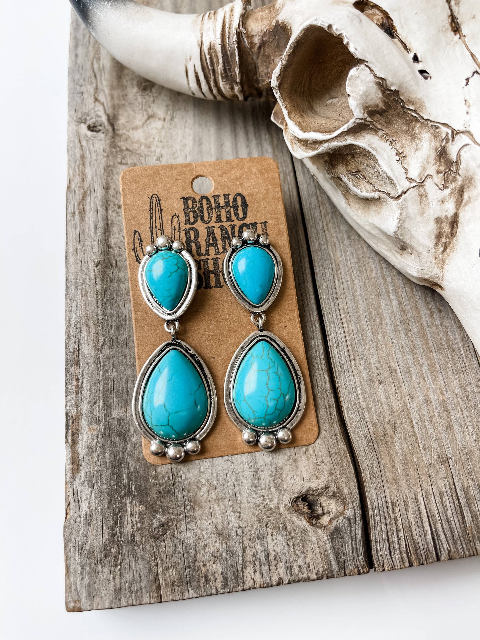 Western Teardrop Stone Dangle Earrings