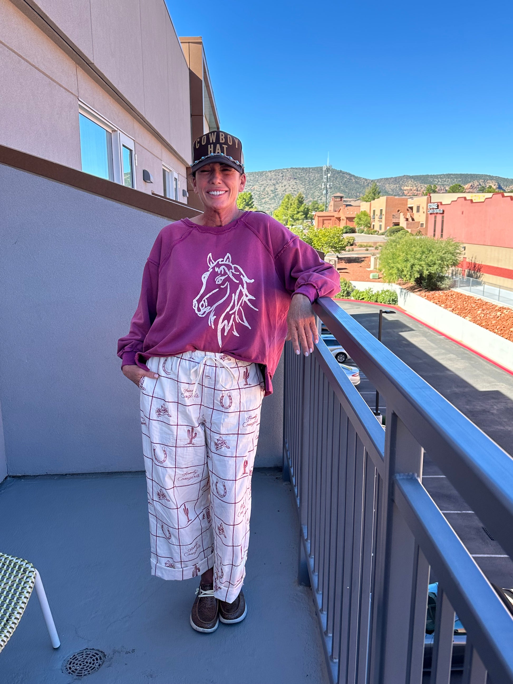 Embrace bold comfort with the Wild Mane Sweatshirt in a vibrant raspberry shade. Its oversized silhouette with drop shoulders offers a relaxed, cozy fit, while raw edge neckline and exposed seams add an edgy touch. Featuring playful horse motifs, ribbed cuffs, and a distressed hemline, this sweatshirt brings a fun, worn-in vibe to your casual wardrobe. Perfect for those who love style with a little wild spirit!